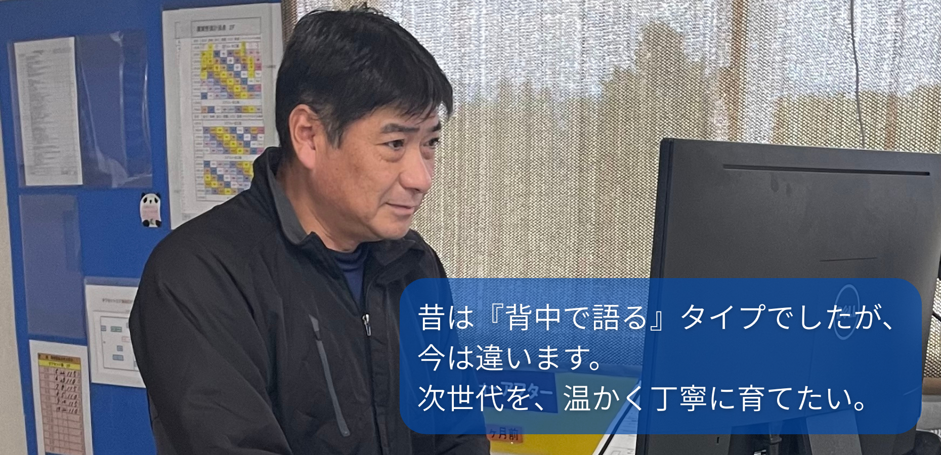 入社当初は、先輩の背中を見て覚えるような環境で、管理職になることも想像していませんでした。しかし29歳で課長を任されてからは、責任感が生まれ、部門全体を見て判断する視点が身につきました。現在は各部門とのコミュニケーションを重視し、必要なことは丁寧に伝えながら全体が円滑に動くよう調整する立場へと成長できたと感じています。